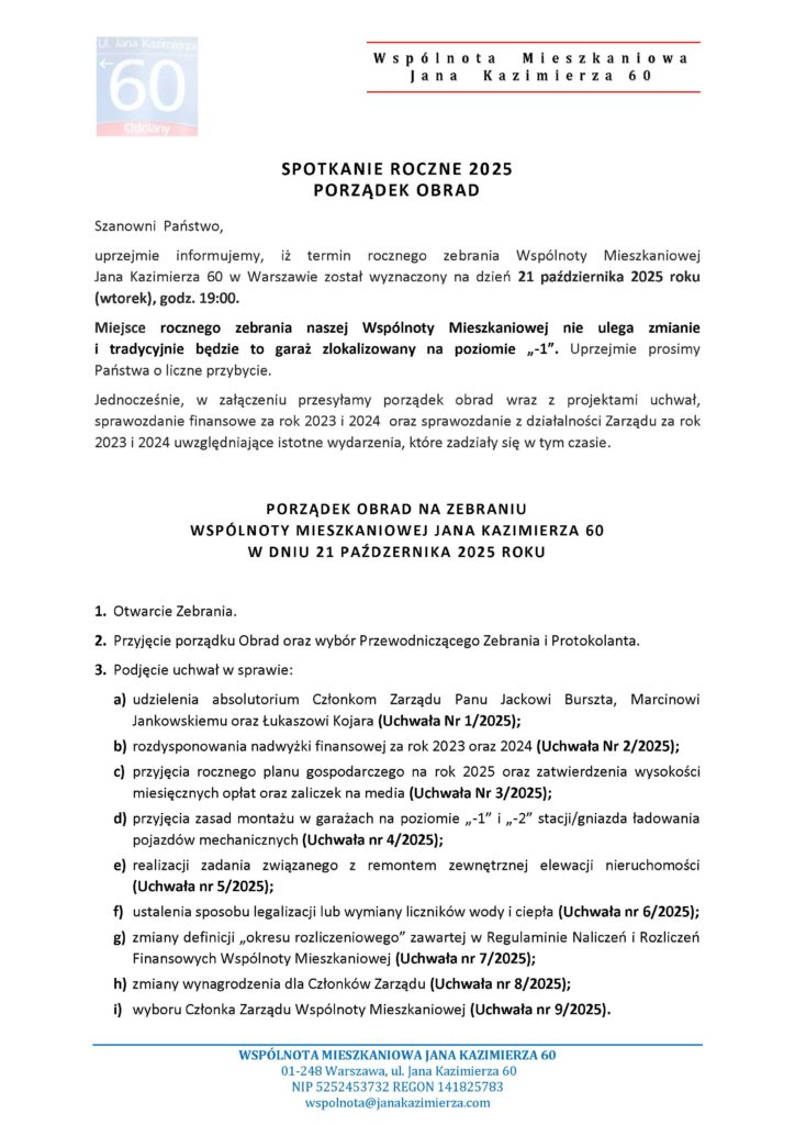 SPOTKANIE ROCZNE 2025 – porządek obrad wraz z projektami uchwał, sprawozdaniem z działalności Zarządu za 2023 i 2024 rok oraz sprawozdaniem finansowym za 2023 i 2024 rok.