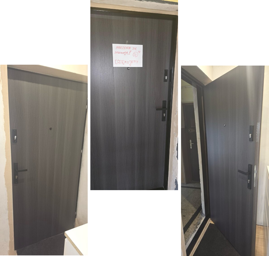 Szlachetna Paczka 2025 wchodzi w decydujący etap. Nie marnujemy czasu (o pieniądzach nie wspominając:), tylko krok po kroku realizujemy zgłoszone i zweryfikowane potrzeby. Rodzina ma już zamontowane nowe drzwi! Drzwi są wyposażone w wizjer, klamkę oraz atestowane zamki z bolcami. Dzięki tym drzwiom odzyskali tak ważne poczucie bezpieczeństwa!