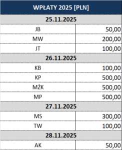 Nie ukrywamy, że bardzo liczymy również na wpłaty, które pozwolą nam zrealizować „duże” zakupy: meble, sprzęt AGD i tak potrzebne drzwi.Wierzymy, że na dzień dzisiejszy nasza zbiórka dopiero się rozkręca. Otrzymaliśmy 10 wpłat, w łącznej wysokości 2.400 PLN. Za wszystkie bardzo dziękujemy!