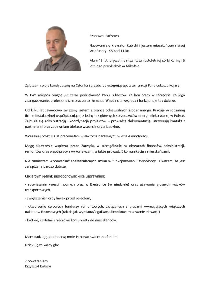 przesyłamy autoprezentację kandydata na nowego Członka Zarządu.